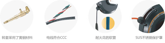 秉承一直以來不變的高信用,TRIENS不斷超越自身. 使客戶放心的產(chǎn)品 熟知產(chǎn)品使用環(huán)境,不斷超越客戶所要求的品質(zhì). 轉(zhuǎn)套采用了黃銅材料 電線符合CCC 耐火花的軟管 SUS不銹鋼保護(hù)罩