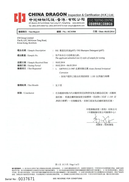 2、PH值中性,物料環(huán)保安全,對(duì)環(huán)境、車漆、輪胎、皮膚等無(wú)危害(附香港 機(jī)構(gòu)認(rèn)證圖)