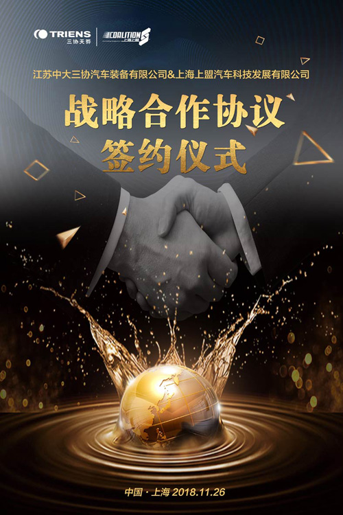 桂子月中落,天香云外飄。金秋11月,在這個(gè)收獲的季節(jié),三協(xié)天驊與上海上盟汽車科技發(fā)展有限公司(以下簡(jiǎn)稱:上海上盟)品牌戰(zhàn)略合作簽約儀式在上海上盟總部隆重舉行。