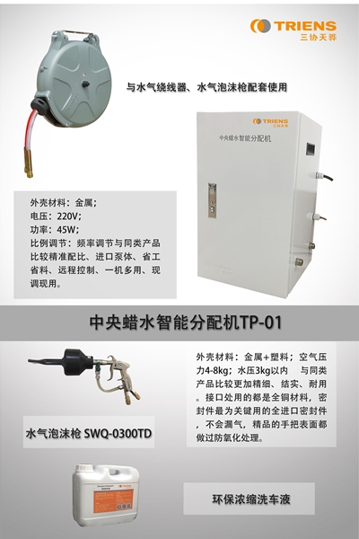 3、配套使用三協(xié)天驊中央蠟水分配機(jī)+水氣一體鼓+泡沫槍,直接將蠟水分配機(jī)吸液過(guò)濾閥放入瓶中即可使用(附圖),無(wú)需額外用大桶調(diào)配,方便快捷;