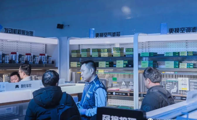 透明產(chǎn)品:抓貨結(jié)賬。德式精養(yǎng)門店用到的所有產(chǎn)品全部在開放式體驗(yàn)區(qū)進(jìn)行陳列。精檢下單后,系統(tǒng)會根據(jù)車型和項(xiàng)目自動生成施工需要用到的產(chǎn)品編號,門店技師根據(jù)編號帶領(lǐng)客戶一起揀選產(chǎn)品。這種體驗(yàn)很像在盒馬鮮生吃海鮮的時(shí)候,現(xiàn)場撈帝王蟹所帶來的快感。撿貨完畢后,技師帶領(lǐng)客戶進(jìn)行產(chǎn)品出庫結(jié)賬,一旦結(jié)賬,德式精養(yǎng)保證在規(guī)定時(shí)間內(nèi)完成施工。